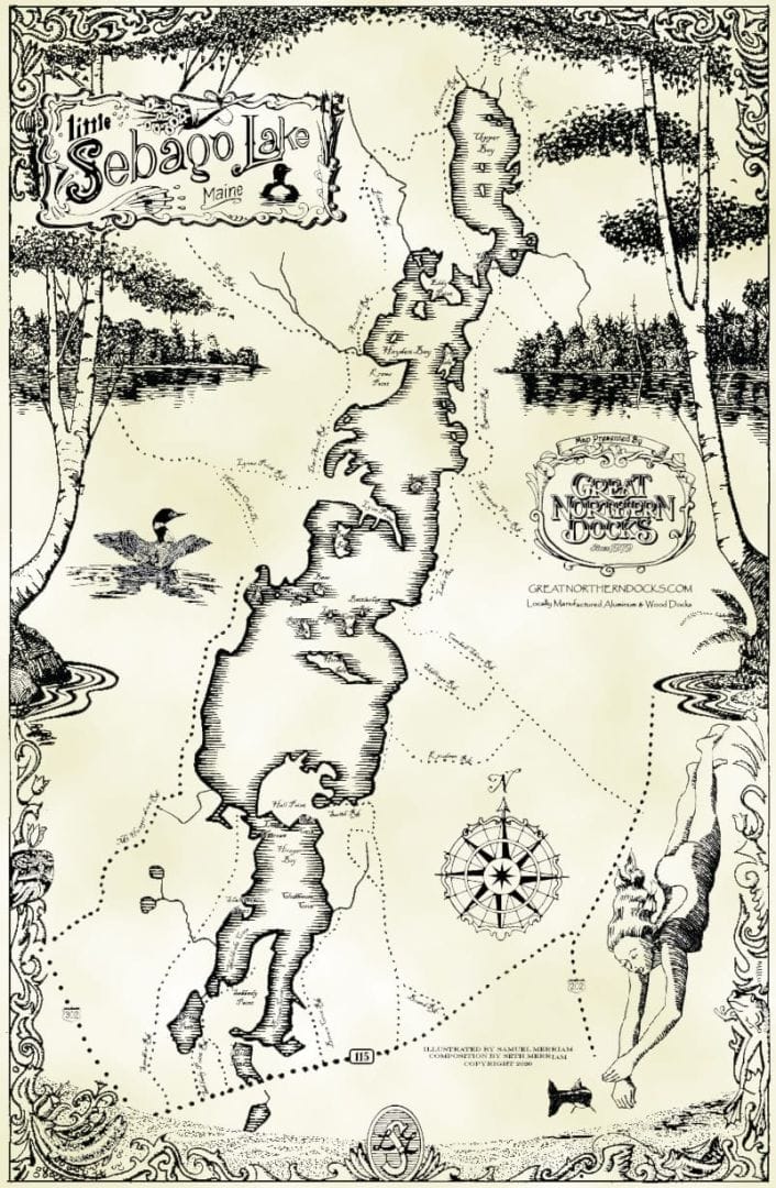 Product: Artistic map of Little Sebago Lake